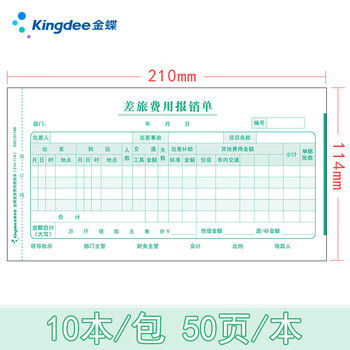 金蝶(kingdee)210*114mm差旅费报销单原始凭证报销单据粘贴单据 财务专用通用会计记账凭证纸 SS210114B