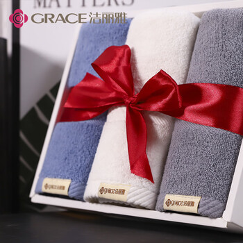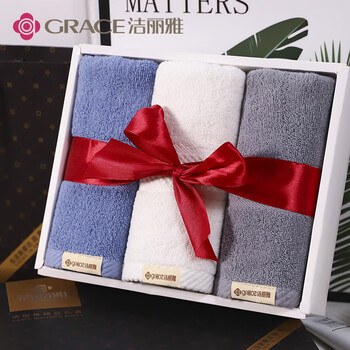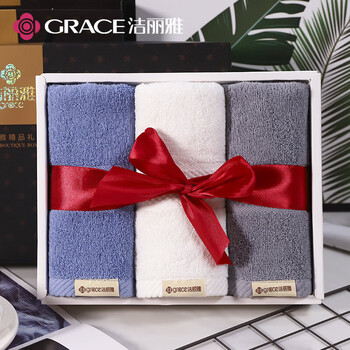 洁丽雅(Grace)毛巾礼盒 A类纯棉洗脸毛巾成人家用柔软3条礼盒套装 公司员工福利