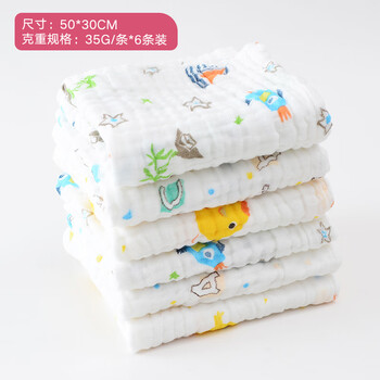 洁丽雅(Grace)A类纯棉纱布小毛巾婴儿六层泡泡普密纱布童巾擦水擦手擦嘴6条装