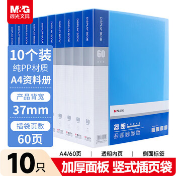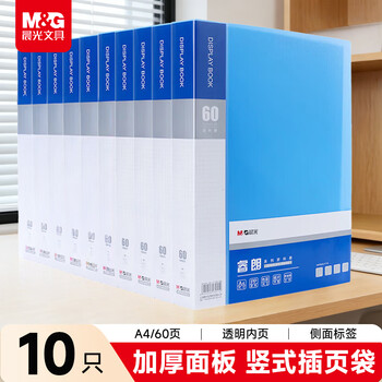 晨光(M&G)文具A4/60页蓝色资料册 办公文件册 经济款防水文件插页袋文件夹 10个装ADM929Z5