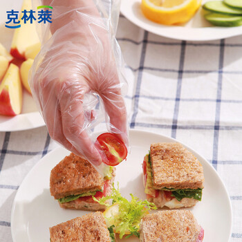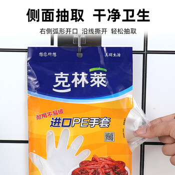 克林莱韩国进口PE手套一次性100只加厚厚实耐用不易破护肤野餐食品用