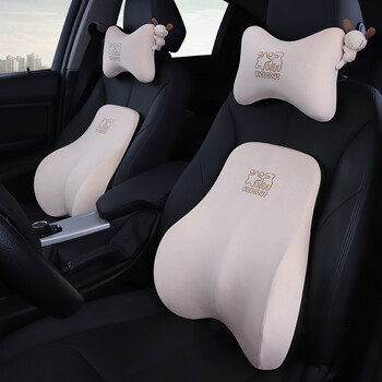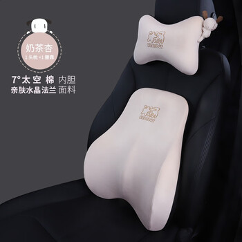 爱车屋 ICAROOM 汽车头枕腰靠套装 太空记忆棉车用护颈腰枕垫办公座椅靠背T-001M/630M-X 杏色