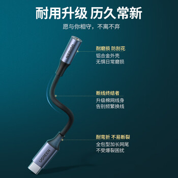 绿联 耳机转接头解码芯片Type-C转3.5mm耳机音频转换器适用于iPad Pro平板iphone17/16华为mate60/P70