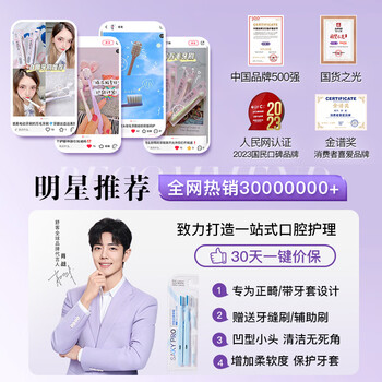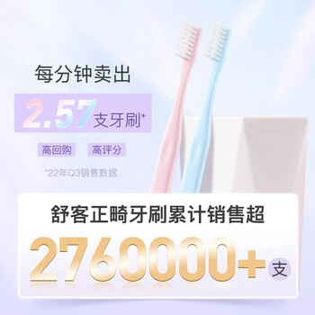 舒客【肖战同款】正畸软毛牙刷2支青少年学生矫正戴牙套含牙缝刷蓝色