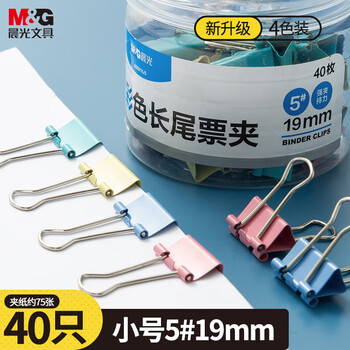 晨光(M&G)文具热门商品【超级爆款】5#19mm 40只/罐 彩色长尾夹 经济型办公燕尾夹 ABS916J5