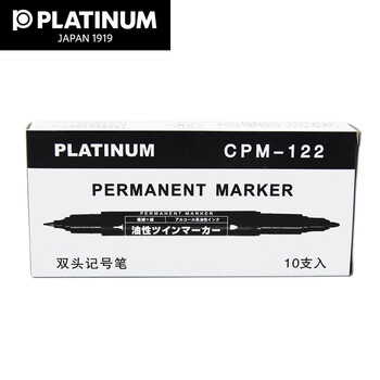 白金(PLATINUM)钢笔CPM-122粗细双头记号笔光盘油性笔绘图勾边勾线笔 10支盒装 蓝色