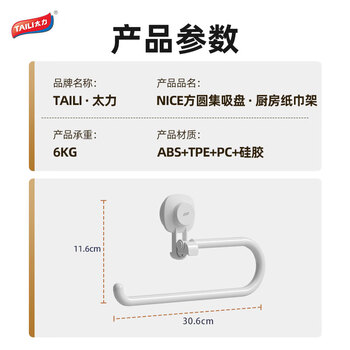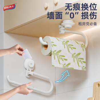 太力吸盘纸巾架 免打孔厨房置物架壁挂卷纸架吸盘懒人厨房纸挂架挂钩