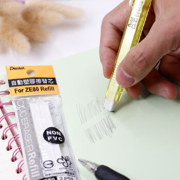 派通(Pentel )笔形美术橡皮擦 学生白色手推式橡皮替芯2袋装 ZER80