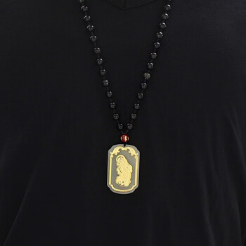 蒂蔻(Tico)招财貔貅金镶玉吊坠男和田玉吊牌黑玛瑙项链送老公爸爸生日礼物