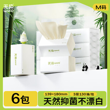 无染wuro本色抽纸 竹浆纸3层130抽*6包M码 纸巾卫生纸餐巾纸面巾纸单提