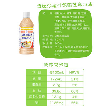 丘比(KEWPIE)沙拉酱 沙拉汁 焙煎芝麻口味 调味品 水果蔬菜烤肉火锅 340ml*1瓶