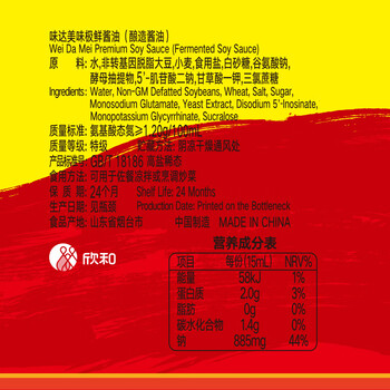 味达美经典系列 味极鲜酱油1.8L【特级酱油】生抽 欣和出品