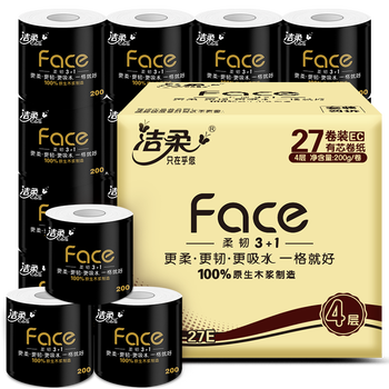 洁柔有芯卷纸 黑Face加厚4层200克*27卷 高克重 卫生纸卷筒纸纸巾整箱