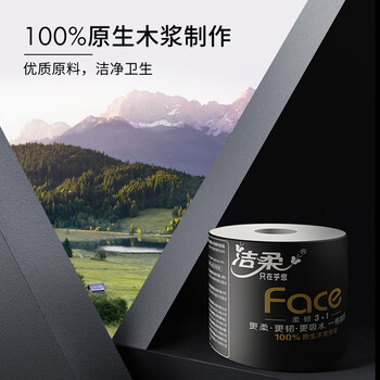 洁柔黑Face卷纸 200克加厚4层卫生纸*27卷一格就够环保易降解冲散直接冲入马桶不堵塞 新老品交替发货