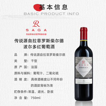 拉菲(LAFITE)传说波尔多赤霞珠梅洛干红葡萄酒 750ml*6瓶整箱装