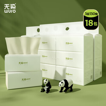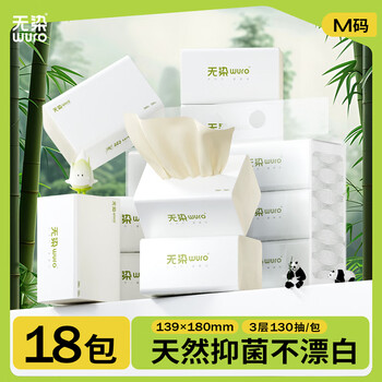 无染wuro本色抽纸 竹浆纸3层130抽*18包M码 纸巾卫生纸餐巾纸面巾纸整箱