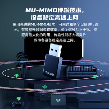 Tenda腾达USB无线网卡智能免驱AC650 台式机专用WiFi接收器5G双频网卡 笔记本电脑外置网卡WiFi发射器