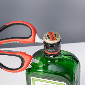得力(deli)多功能厨房剪刀 食物专用剪刀 锯齿防滑可拆分易清洗 红色77770