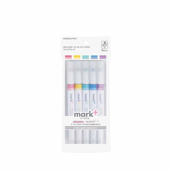 国誉(KOKUYO)【日本文具大赏】进口mark+彩色荧光笔 学生用划重点记号笔 双头淡色系5色套装5支PM-MT200-5S