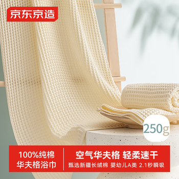 京东京造 轻柔速干华夫格浴巾 纯棉A类不掉毛吸水男女加大洗澡浴巾 米色