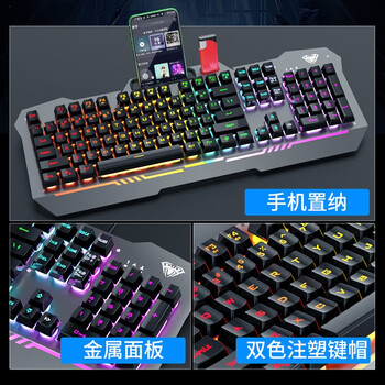 狼蛛(AULA)F3010机械手感键盘 游戏键盘 有线键盘104键 背光发光台式电脑笔记本网吧外设吃鸡 混光 银白色