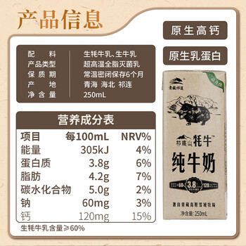 青藏祁莲【新鲜日期】牦牛奶≥60% 250ml*12祁连山牧场纯牛奶送礼礼盒装