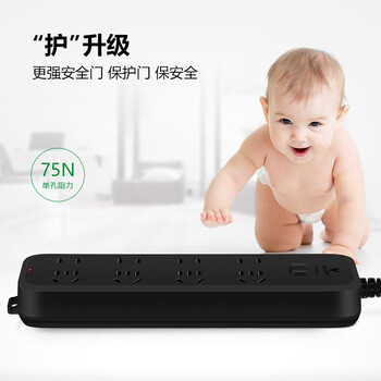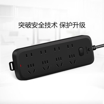 公牛(BULL)插座/插线板/插排/排插/接线板/拖线板 黑色质感 8位总控开关全长1.8米 GN-B8440H