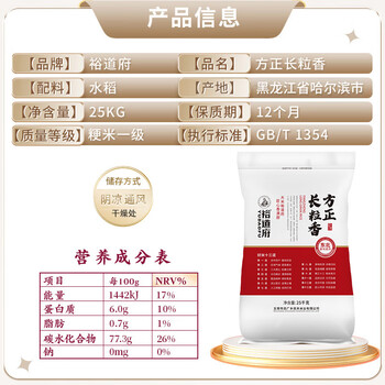 裕道府方正长粒香50斤家庭装 东北大米25kg 囤货批发 当季新米 自营