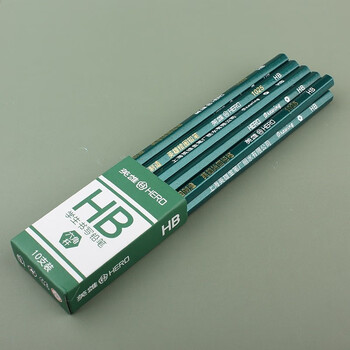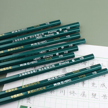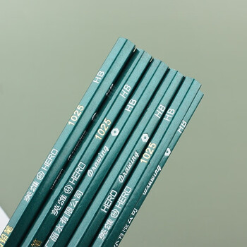 英雄(HERO)铅笔 红木六角杆闪光绿两头切光学生考试素描绘图铅笔 10支装 1025-HB