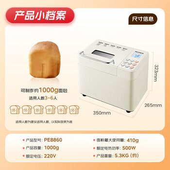 柏翠(petrus)面包机 烤面包机 揉面和面机 全自动 家用冰淇淋PE8860Y