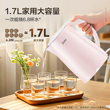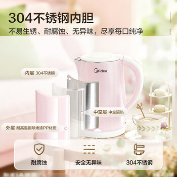 美的(Midea)电热水壶烧水壶养生双层防烫0涂层 食品级304不锈钢1500W快速沸腾1.7L大容量泡茶 HJ1705
