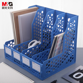 晨光(M&G)四联带标签镂空桌面文件框 稳固文件栏/文件筐/资料框 蓝色单个装ADM929R8B