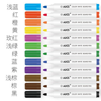 AUCS彩色白板笔套装12色 漂浮笔水中画画 控笔训练幼儿园可擦水性儿童学生办公教学家用涂鸦笔 12支/盒