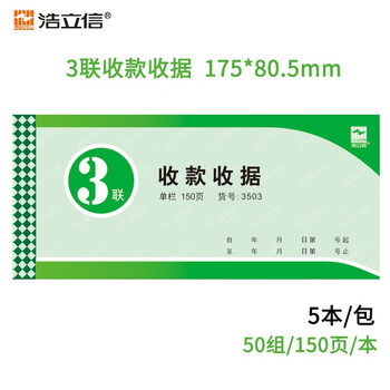 浩立信(LISON)3503-54K 175*80.5 5本/包 50组三联单栏收据 百万位 财务手写收款收据单 无碳原纸 自带垫板