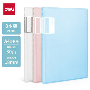 得力(deli)A4/30页淡彩资料册 学生试卷文件夹奖状收集册产检报告孕检收纳册 办公文件保护 3只混色装 27151