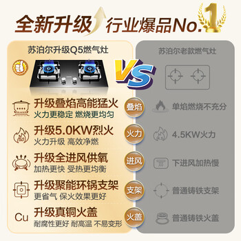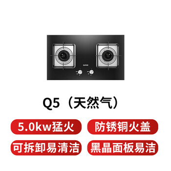 苏泊尔(SUPOR)燃气灶煤气灶具双灶5.0KW大火力一级能效台式嵌入式钢化玻璃面板全进风天然气Q5