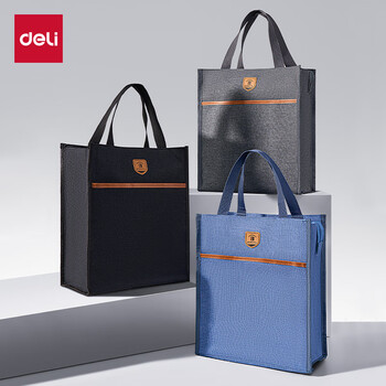 得力(deli)学生补习袋 大容量多功能手提袋购物袋 拎书袋 儿童美术袋补课书包 灰色开学必备