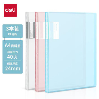 得力(deli)A4/40页淡彩资料册文件夹 学生奖状收集册产检报告孕检资料收纳册 时尚简约大容量3只混色装 27152