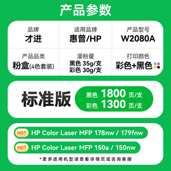 才进适用惠普178nw硒鼓HP118a硒鼓179fnw 150a 150nw粉盒Color Laser MFP m178nw彩色打印机墨盒W2080A墨粉仓