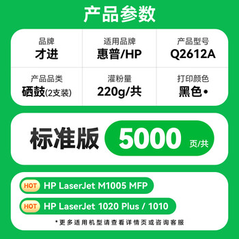 才进适用惠普m1005硒鼓hp1020墨盒2a 1020plus激光打印机一体机1010 laserjet m1005mfp 1018 q2612a m1319f