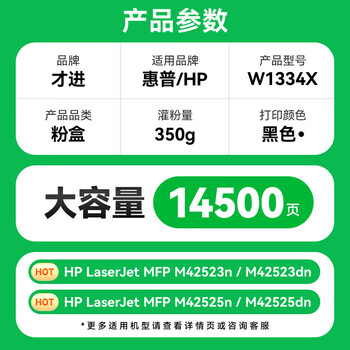 才进适用惠普334A粉盒W1334A碳粉硒鼓墨盒M42523n M42523dn打印机墨粉盒M42525n M42525dn复印机墨粉LaserJet