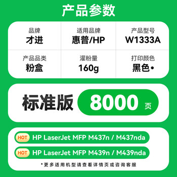 才进适用惠普W1333a粉盒LaserJet MFP m437n m437dn m437nda复印机硒鼓m439n m439nda感光成像鼓CF257A墨粉盒