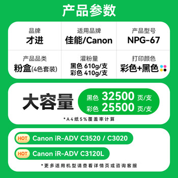 才进佳能NPG-67粉盒C3020墨粉C3222l C3226 C3120L C3125 C3320复印机C3130L 3520碳粉盒3330 3025 G67硒鼓