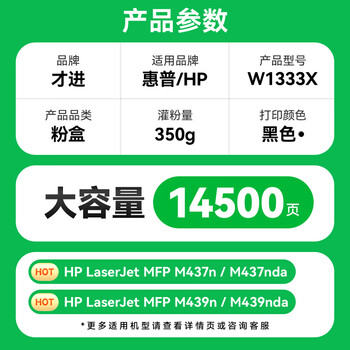 才进适用惠普W1333X粉盒LaserJet MFP m437n m437dn m437nda复印机硒鼓m439n m439nda m439dn碳粉W1333A 333X