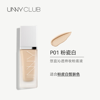 悠宜(unny club)清润持妆粉底液P01粉瓷白干皮bb粉底遮瑕定妆三合一送女士