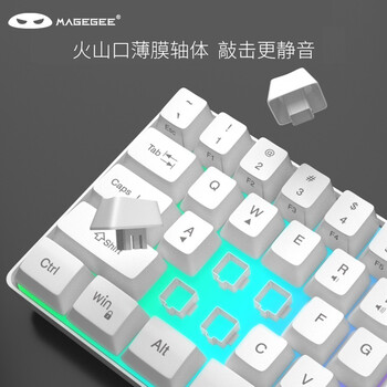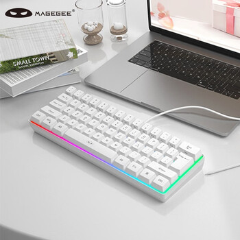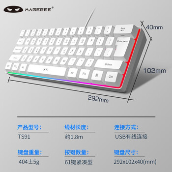 MageGee TS91 有线mini小键盘 RGB背光机械手感游戏键盘 61键迷你便携薄膜键盘 电脑笔记本游戏键盘 白色