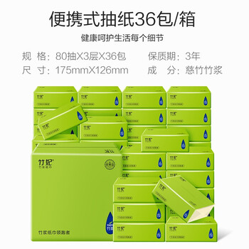 竹妃便携式抽纸3层80抽*36包