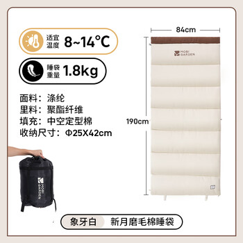 牧高笛(MOBIGARDEN)睡袋 户外露营单人磨毛棉保暖信封睡袋新月1.8 NX20562026 象牙白