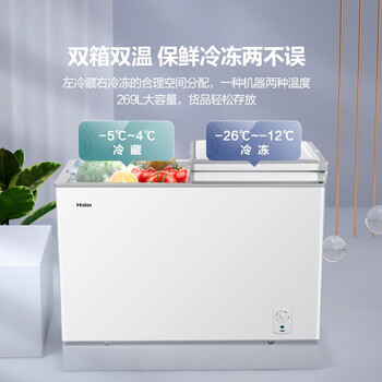 海尔 Haier 269升蝶形门双箱双温区冰柜 家用商用二合一冷柜 FCD-269LH00W0