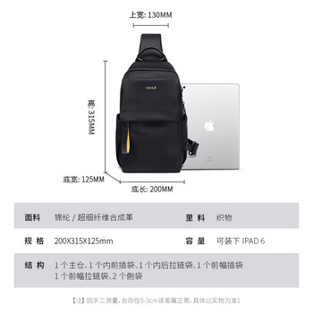 高尔夫(GOLF)胸包男士斜挎包男潮流单肩包休闲ipad手机包骑行运动旅行小背包